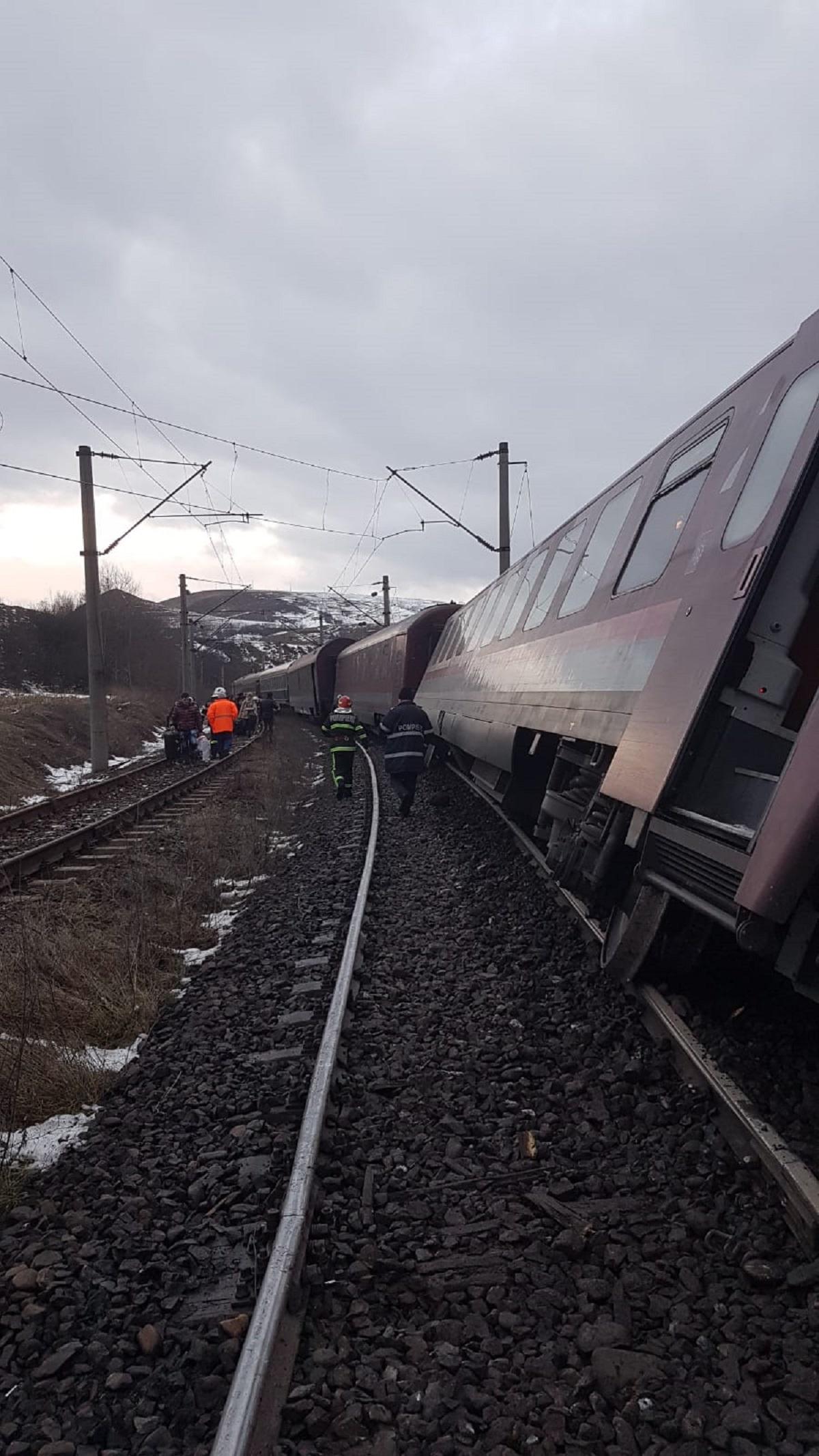Primele imagini cu trenul deraiat lângă Deva, în care se aflau 120 de călători. A fost declanşat Planul Roşu de intervenţie