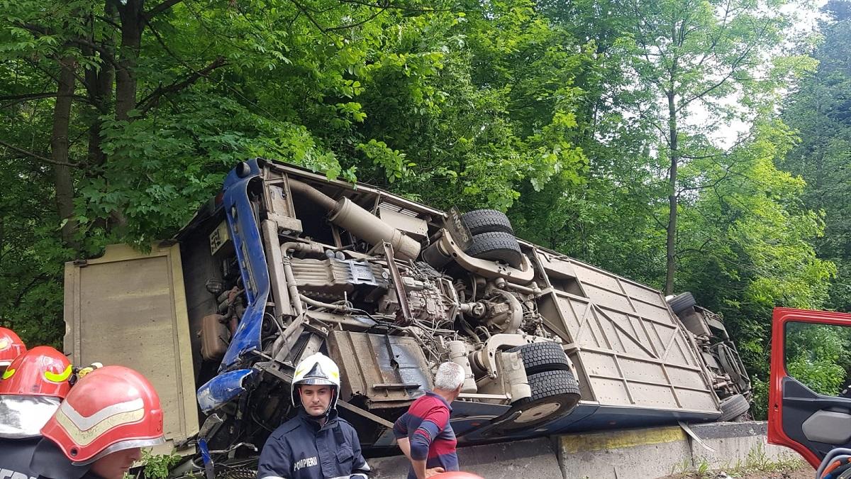 Primele imagini de la Pârul Rece, unde un autocar cu 29 de copii s-a răsturnat. Plan roşu de intervenţie