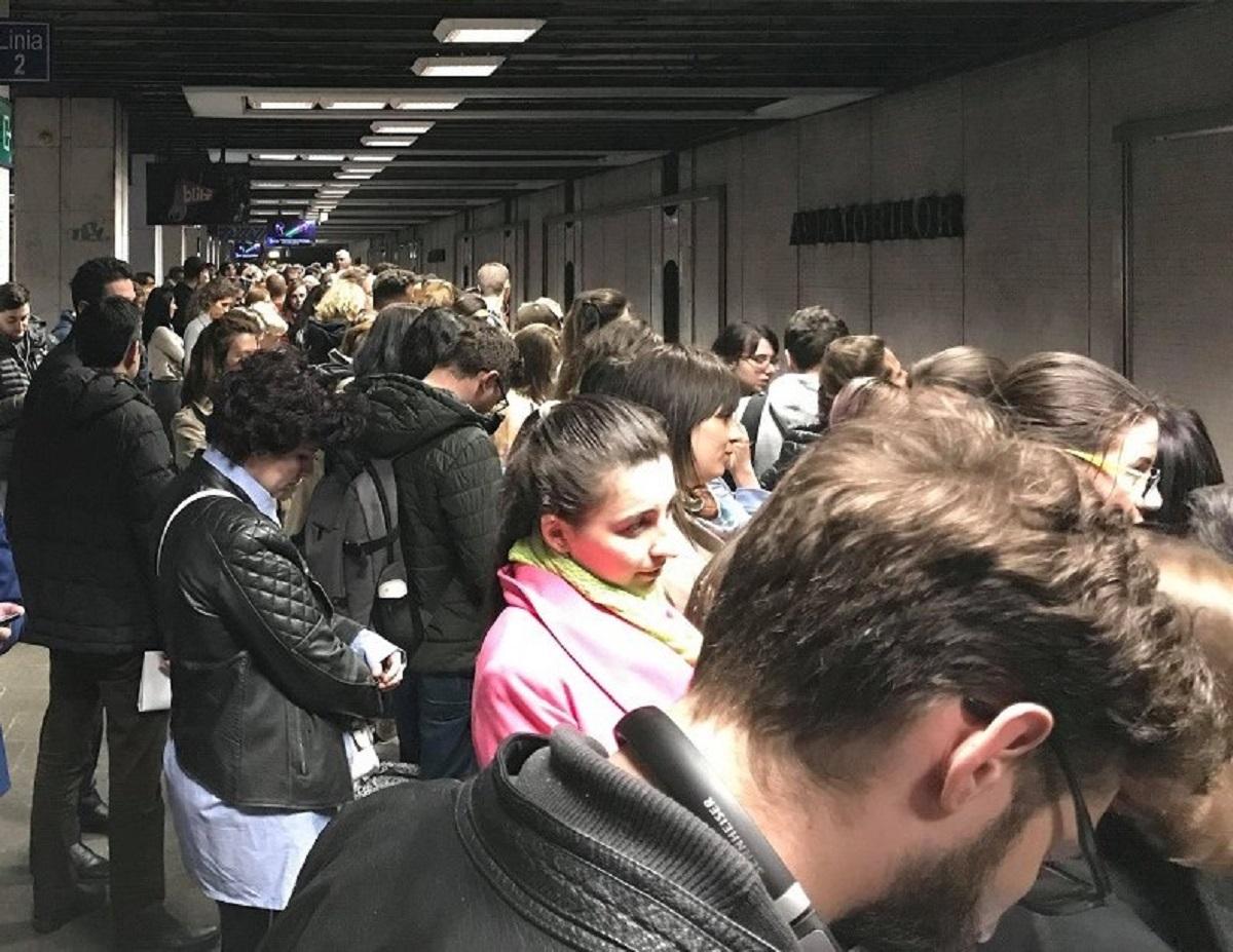 În stația Aviatorilor, peronul a fost aglomerat de oameni care așteptau metroul către Berceni | Sursa foto: Observator