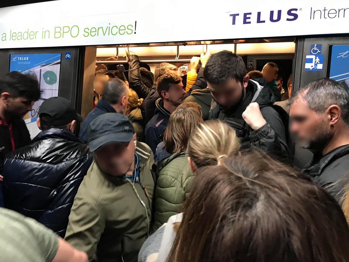 Călătorii fac eforturi să urce într-un metrou venit cu întârziere pe magistrala Pipera - Berceni | Sursa foto: Observator