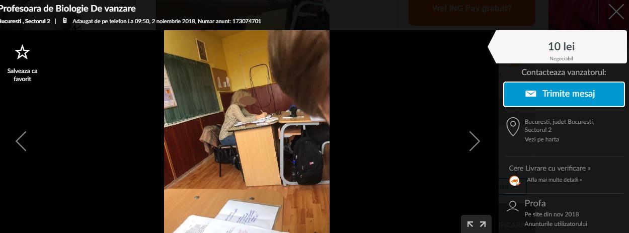 O profesoară de biologie din Bucureşti a fost "scoasă la vânzare" pe OLX de elevii liceului la care predă