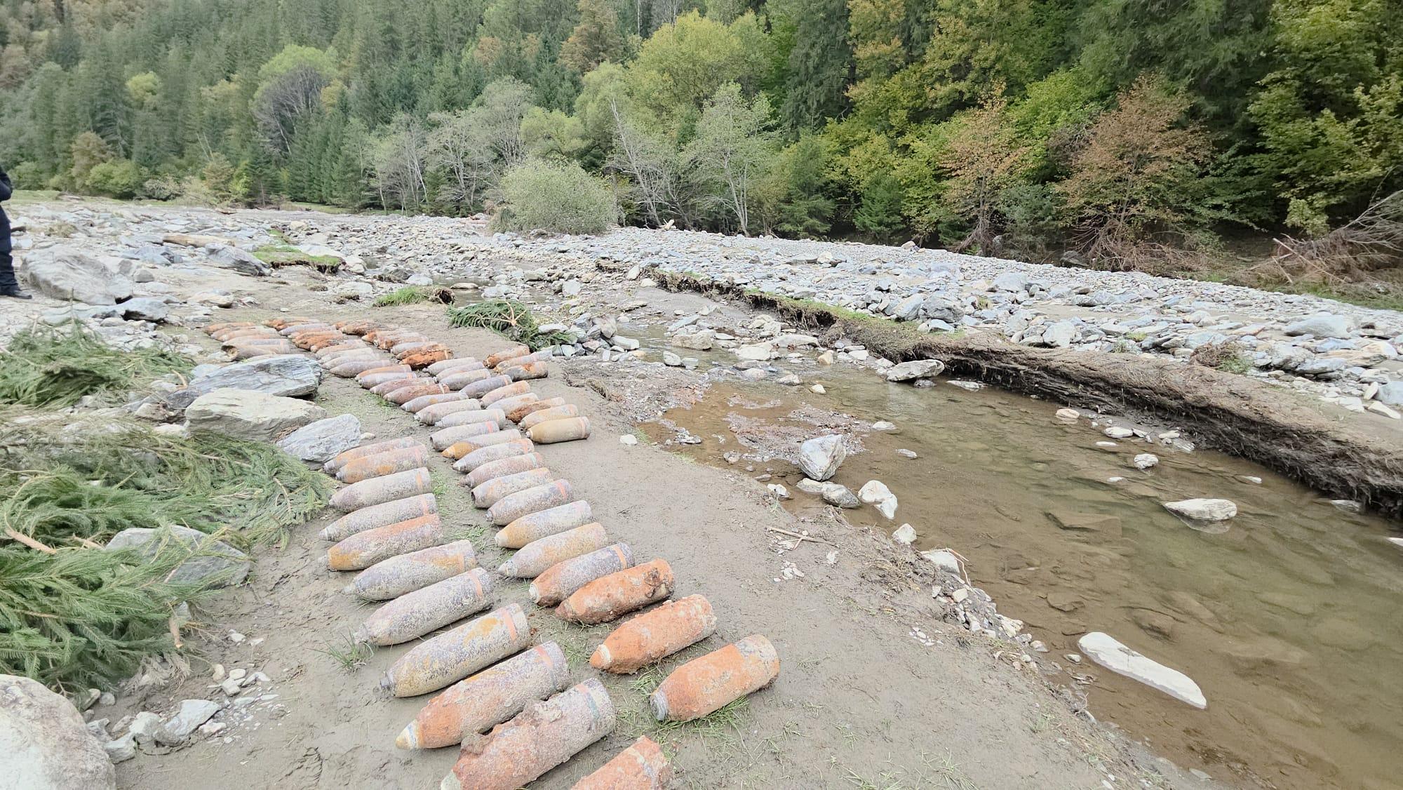 Proiectile din Primul Război Mondial, scoase la suprafață de viituri la Broşteni. Momentul detonării