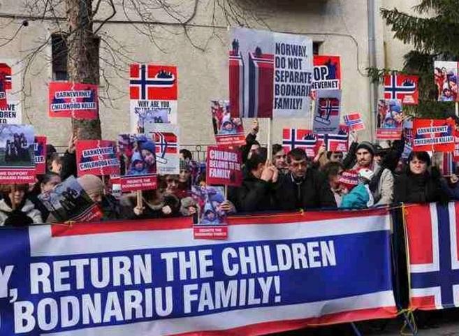Protest la Ambasada Norvegiei, pentru o familie de români