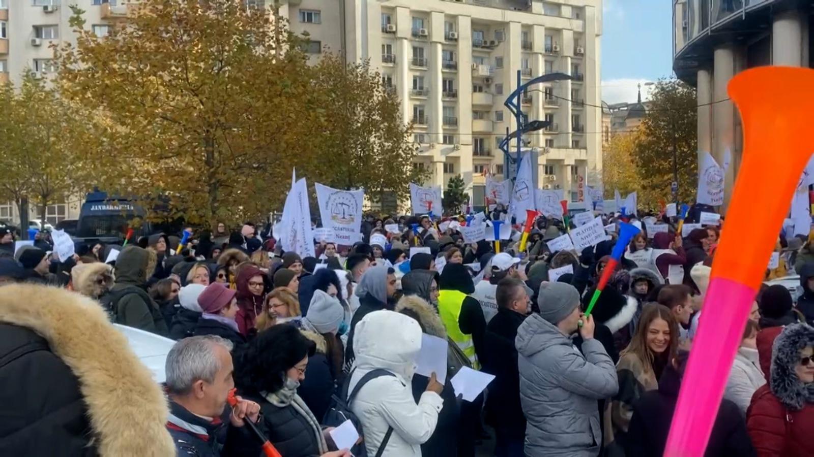 Protest la Înalta Curte de Casație și Justiție din București. Grefierii, scoși în stradă de salariile care nu le-au fost achitate complet și de condițiile de muncă