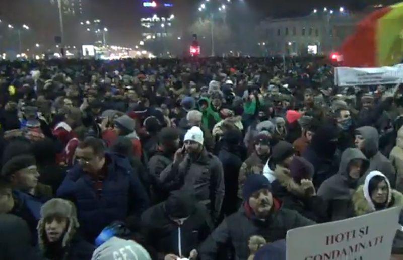 Val de PROTESTE în Bucureşti şi în ţară, după ce guvernul a dat undă verde graţierii şi modificării Codului Penal. Peste 12.000 de protestatari în Piaţa Victoriei