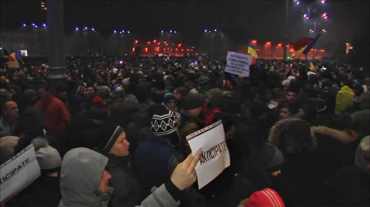 Val de PROTESTE în Bucureşti şi în ţară, după ce guvernul a dat undă verde graţierii şi modificării Codului Penal. Peste 12.000 de protestatari în Piaţa Victoriei