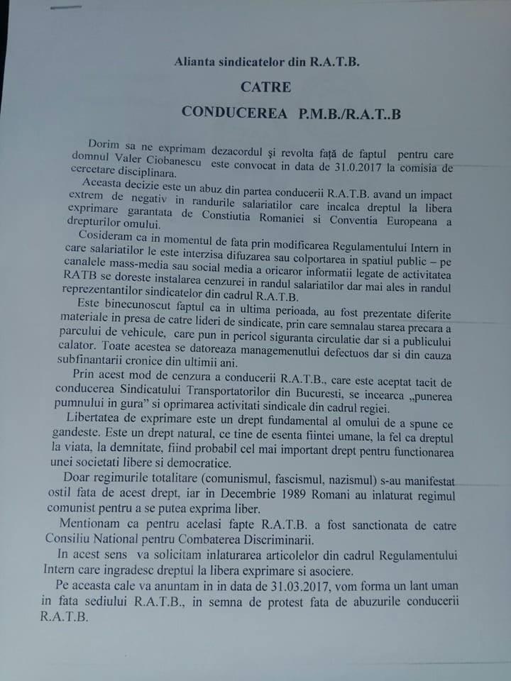 PROTEST la RATB față de "abuzurile conducerii". Sindicatele ies în stradă. LANŢ UMAN în jurul sediului