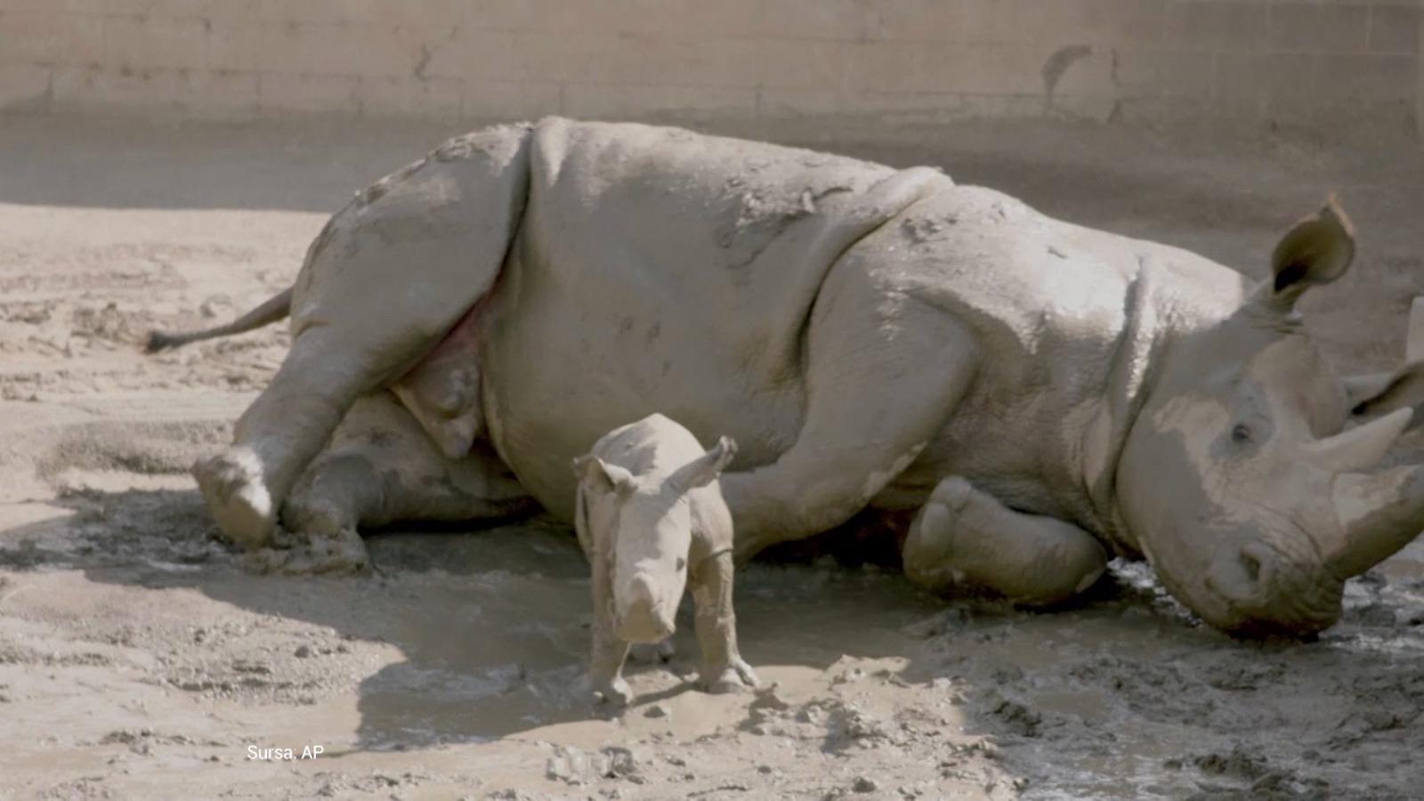 Pui de rinocer alb şi-a făcut oficial debutul în faţa publicului, la o grădină zoologică din San Diego