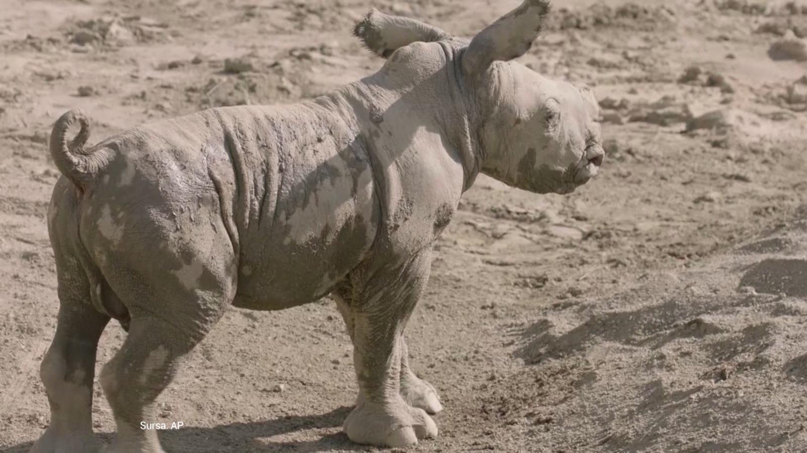 Pui de rinocer alb şi-a făcut oficial debutul în faţa publicului, la o grădină zoologică din San Diego