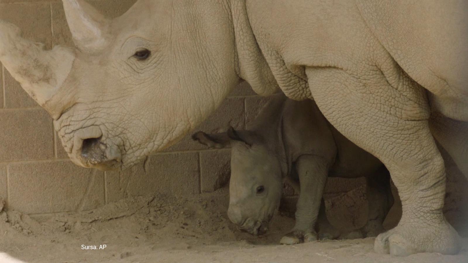 Pui de rinocer alb şi-a făcut oficial debutul în faţa publicului, la o grădină zoologică din San Diego