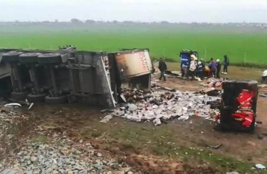 Puii congelaţi din TIR-ul ars pe A2, încărcaţi în căruţă de localnici şi duşi acasă (video)