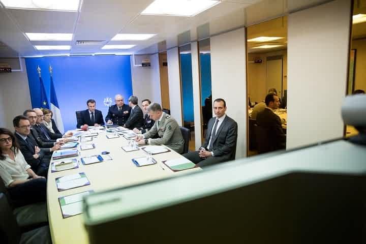 Președintele francez Emmanuel Macron în timpul operațiunii militare din Siria | Sursa foto: Twitter
