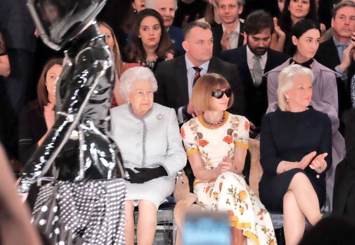 Regina Elisabeta a II-a, prima dată la Săptămâna Modei de la Londra. Colecţia preferată are căşti de biciclişti şi rochii din piele cu dresuri plasă (Video)