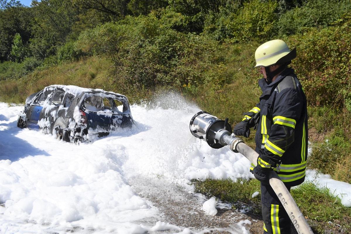 Un Renault a luat foc pe autostradă, pompierii l-au acoperit cu spumă, în Germania