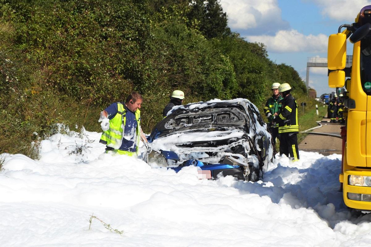Un Renault a luat foc pe autostradă, pompierii l-au acoperit cu spumă, în Germania
