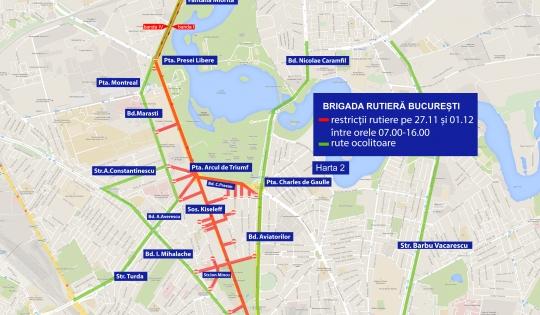 Restricţii majore de trafic în Capitală, în timpul paradei militare de 1 Decembrie. Vezi rutele ocolitoare