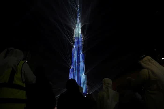 Emiratele Arabe Unite: Spectatorii privesc show-ul de lumin? care a aprins Turnul Burj Khalifa | Sursa foto: Reuters