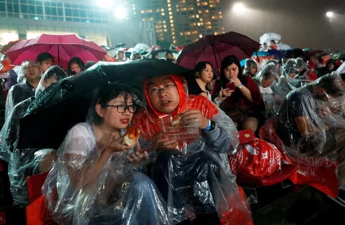 Singapore: Localnicii înfruntă ploaia pentru a se bucura de focul de artificii | Sursa foto: Reuters