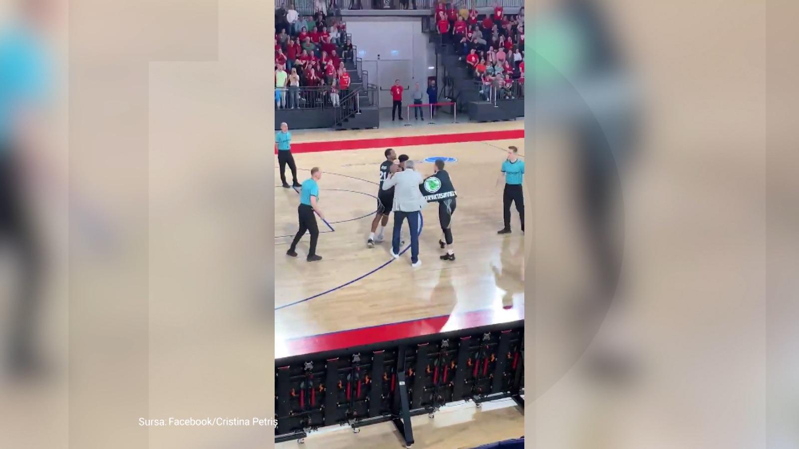 Ring de box la un meci de baschet masculin din Liga Națională. Jucătorul cubanez Karel Guzman a sărit la bătaie și s-a întors să își facă dreptate cu ranga