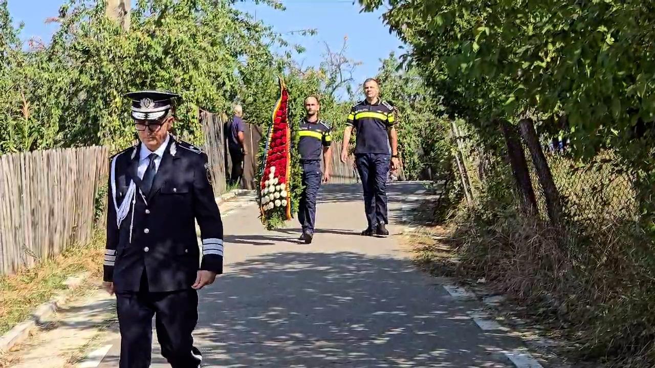 Roberta, poliţista moartă în accident în timpul unei misiuni, condusă pe ultimul drum în sunet de sirene. Zeci de maşini de poliţie au împânzit uliţa din satul natal