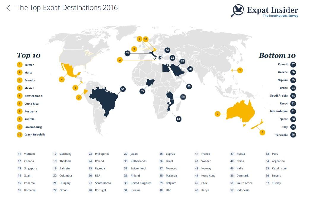 România e pe locul 16 în topul ţărilor căutate de expaţi, în 2016
