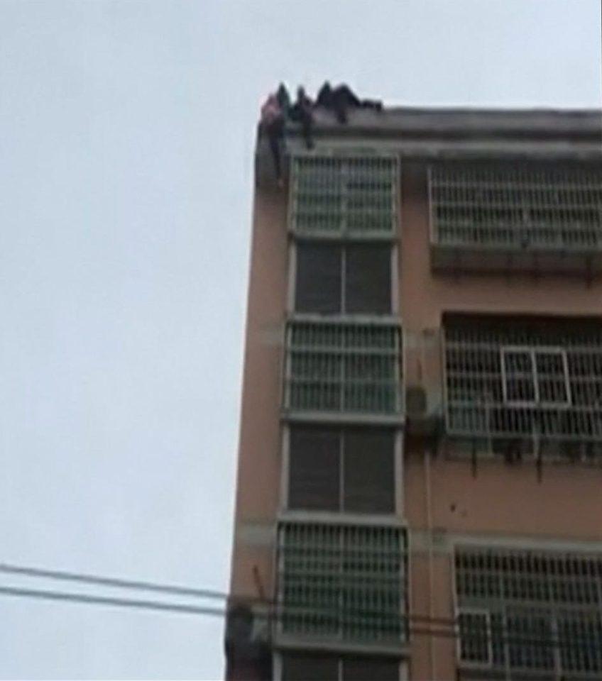 SALVARE DRAMATICĂ: sinucigașă PRINSĂ DE PĂR, când s-a aruncat de pe un bloc de 20 de metri (VIDEO)