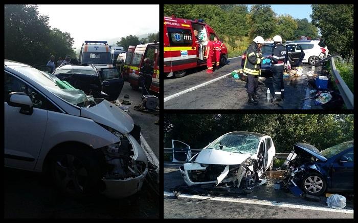 Şapte victime, între care şi doi copii, după ce două maşini s-au izbit frontal în Hunedoara. Trei dintre victime, încarcerate