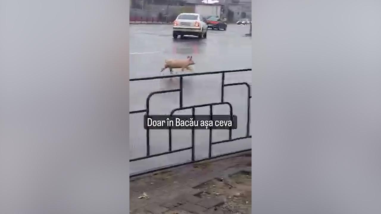 "Săracul, a vrut să evadeze!" Un purceluş, în fugă spre libertate prin centrul Bacăului