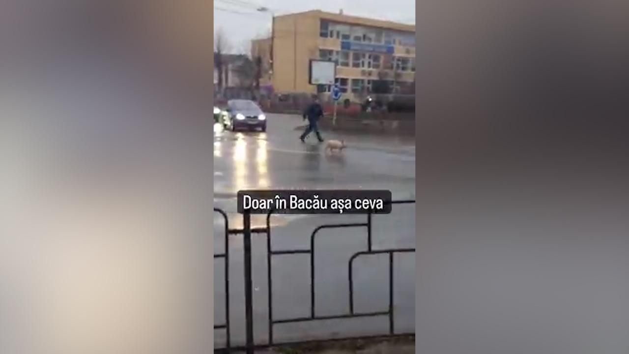 "Săracul, a vrut să evadeze!" Un purceluş, în fugă spre libertate prin centrul Bacăului