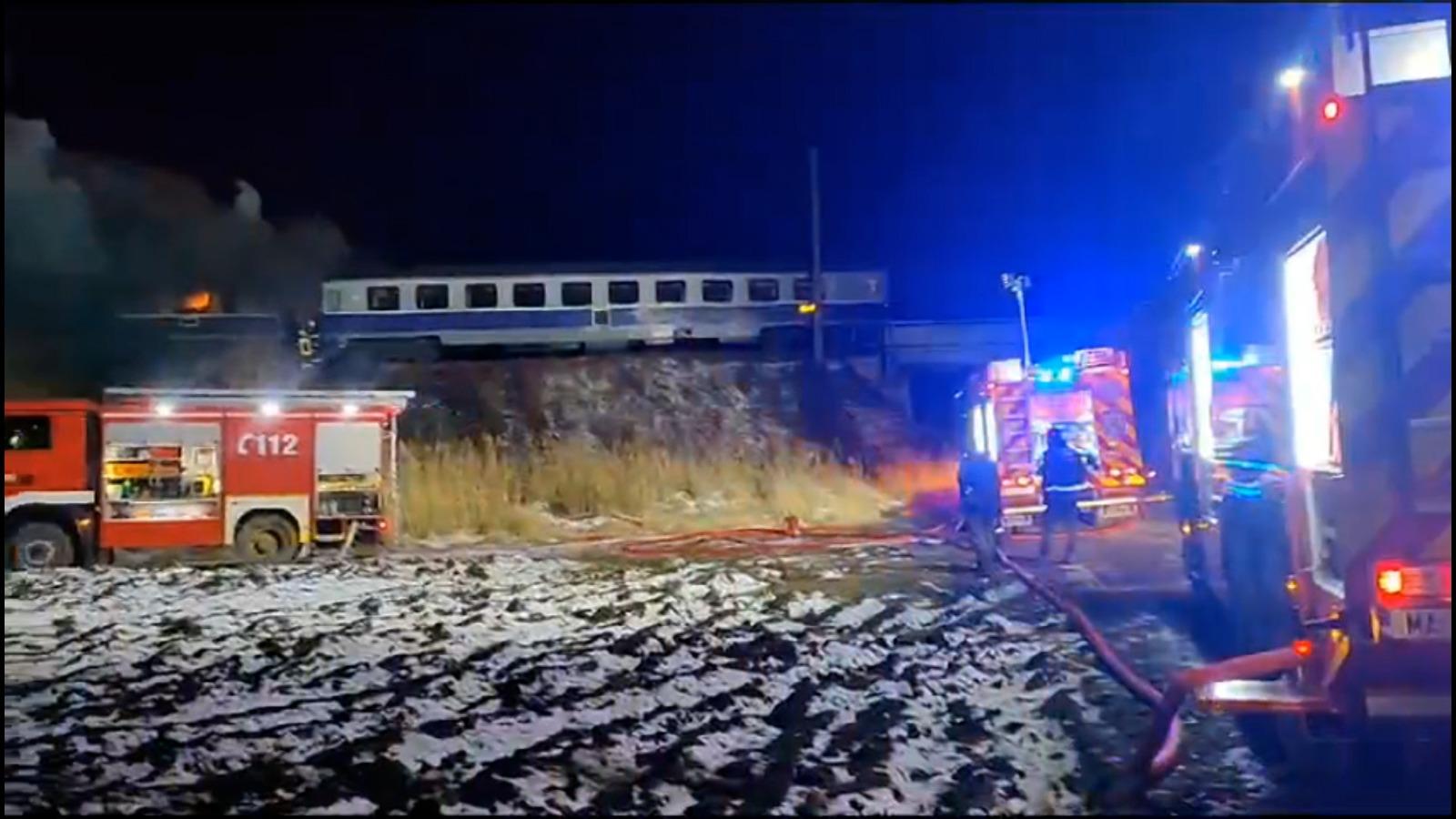 "S-au băgat în flăcări şi i-au scos". Un tren de călători a luat foc pe ruta Galaţi-Cluj. Doi poliţişti au salvat din infern zeci de oameni rămaşi captivi în vagoane