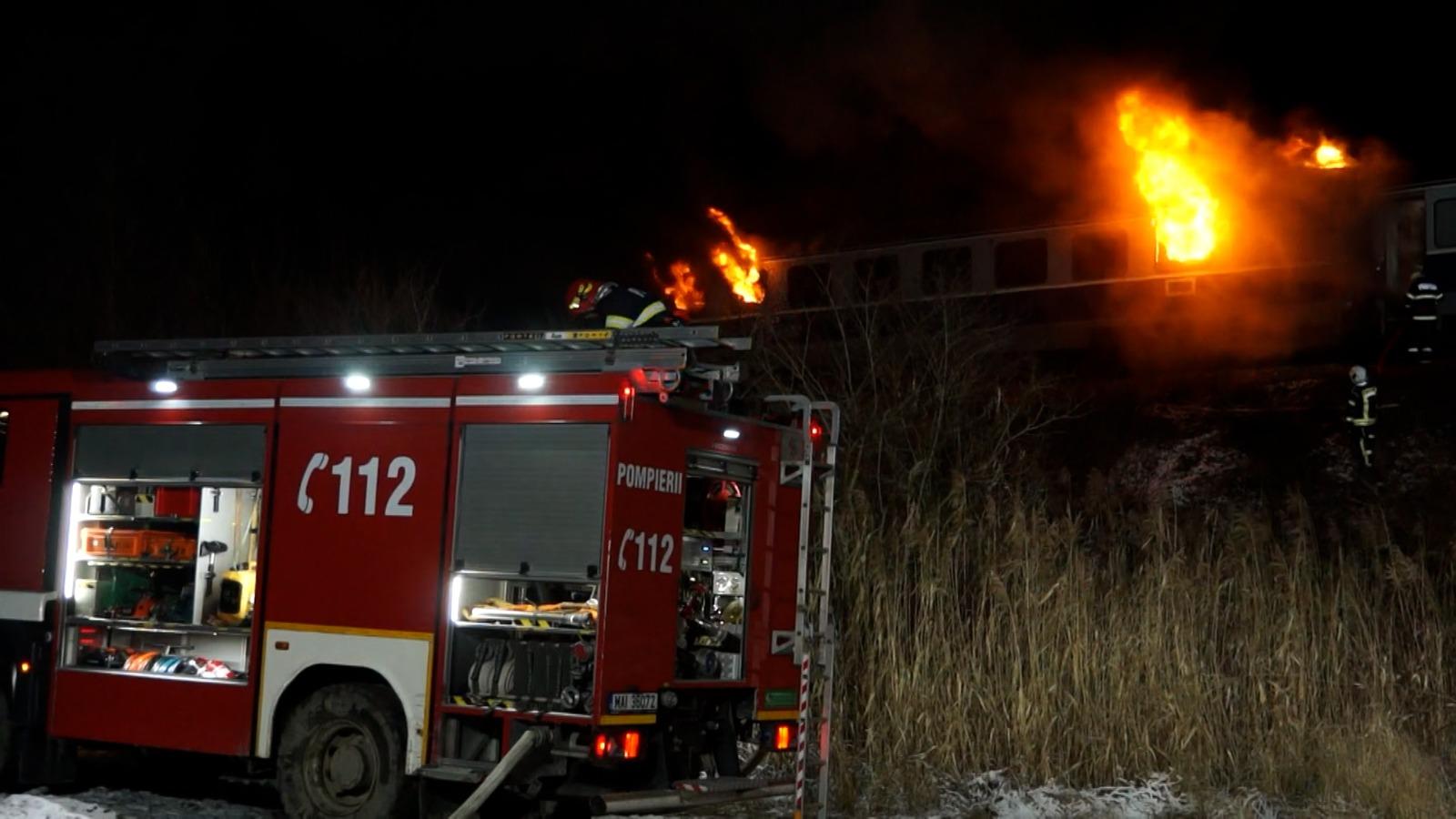 "S-au băgat în flăcări şi i-au scos". Un tren de călători a luat foc pe ruta Galaţi-Cluj. Doi poliţişti au salvat din infern zeci de oameni rămaşi captivi în vagoane