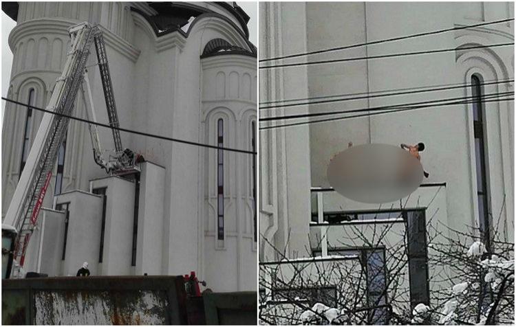 Scene de coşmar în Suceava: Un tânăr s-a urcat gol puşcă pe Catedrală, ameninţând că se sinucide (Imagini dramatice) | Imaginea 3 din 3 | Galerie Foto