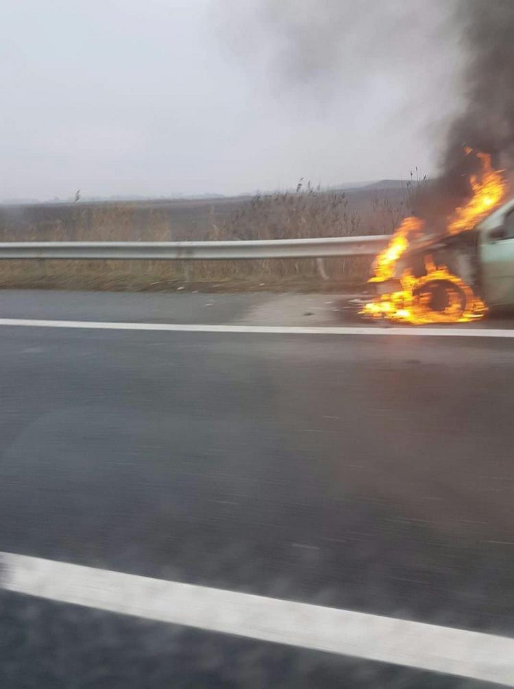 Scene de groază pe autostrada A1 Bucureşti - Piteşti! O maşină este în flăcări la kilometrul 70 (Imagini dramatice)