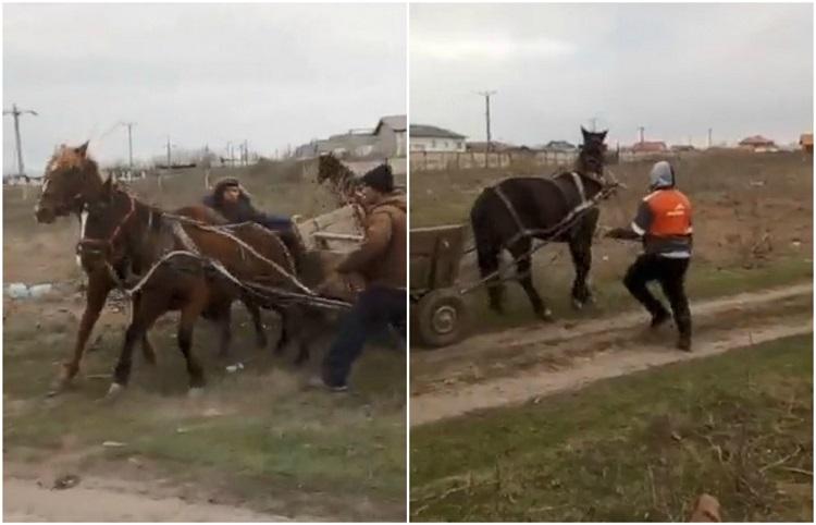 Scene oribile în Galaţi. Mai mulţi indivizi îşi bat joc de trei cai, reproducând un joc marinăresc. Biciuiesc animalele şi le lovesc fără milă | Sursa foto: Observator