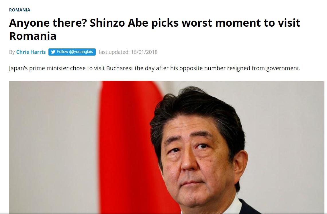 Presa internaţională, uluită de păţania premierului Shinzo Abe în România: "Alo, e cineva acasă?"