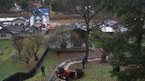 Accident halucinant! O şoferiţă a căzut cu maşina în gol de la 25 de metri, la Sinaia
