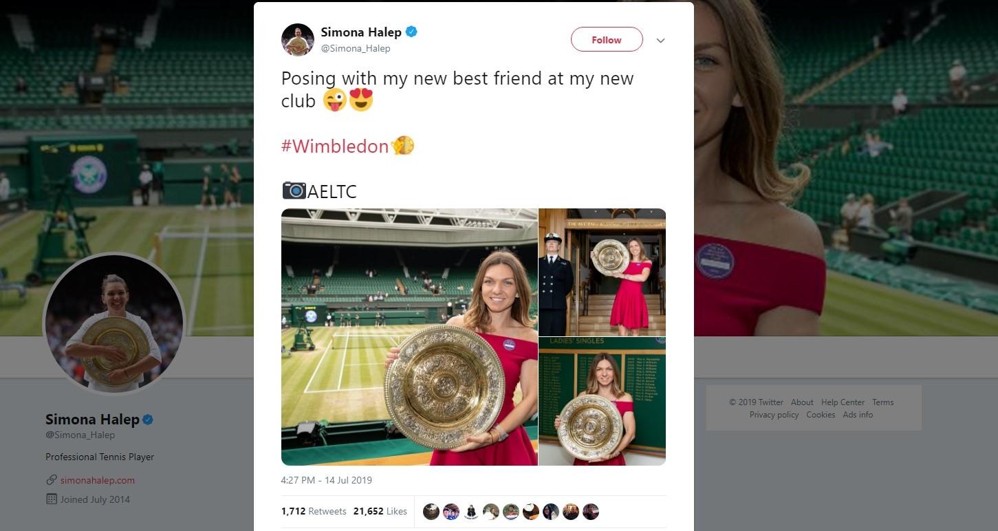 Pozând cu noul meu prieten la noul meu club, a scris Simona Halep pe Twitter | Sursa foto: Twitter/@Simona_Halep