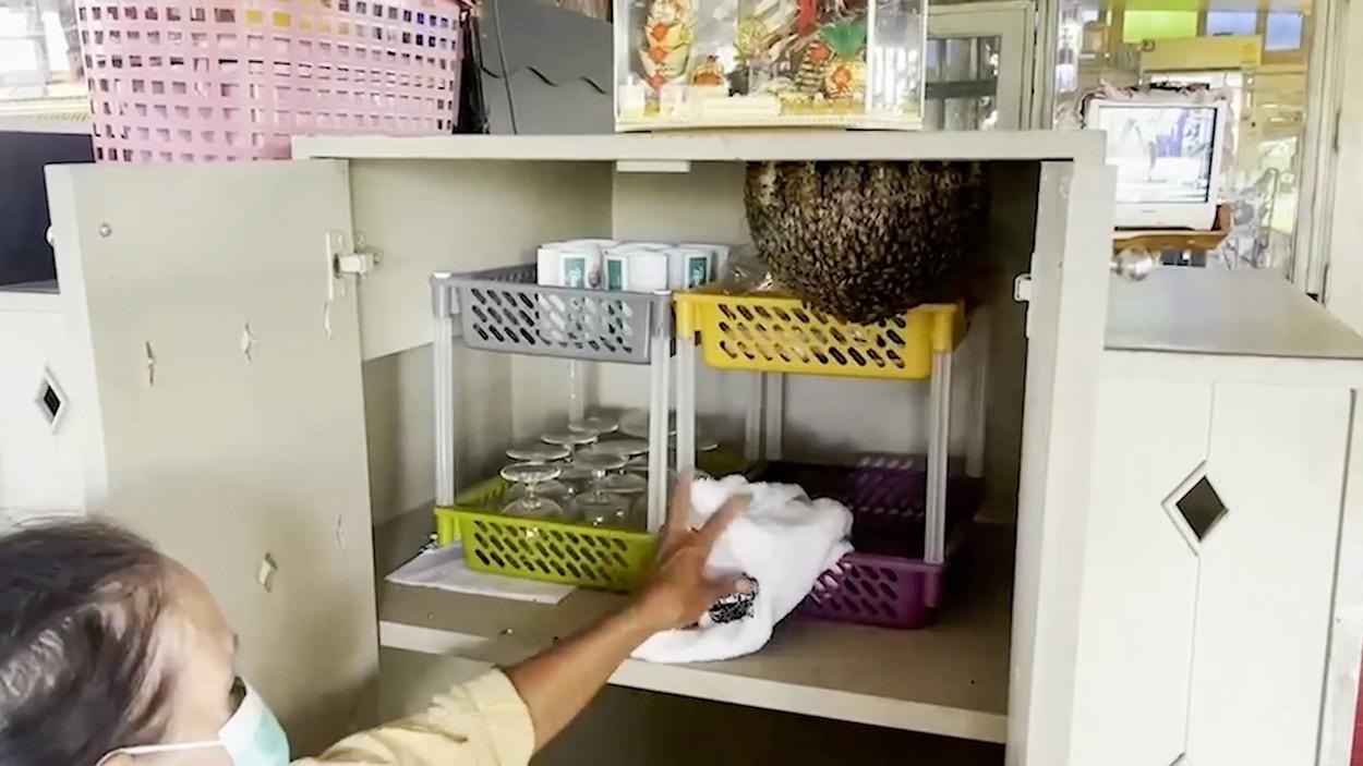 "Simt că sunt speciale şi aduc noroc. Au venit cu un motiv". Stup de albine uriaș, descoperit întâmplător în bucătăria unui restaurant din Thailanda | Imaginea 3 din 5 | Galerie Foto