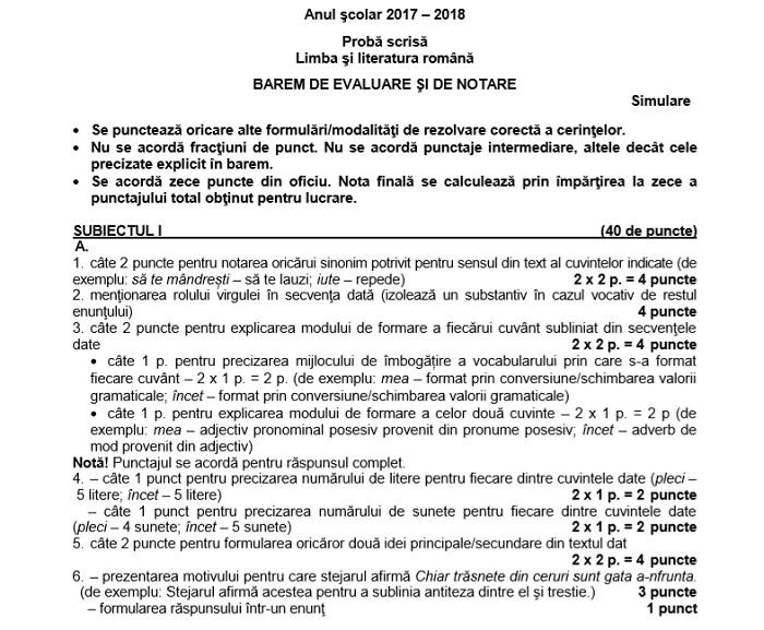 Barem simulare evaluare nationala limba română