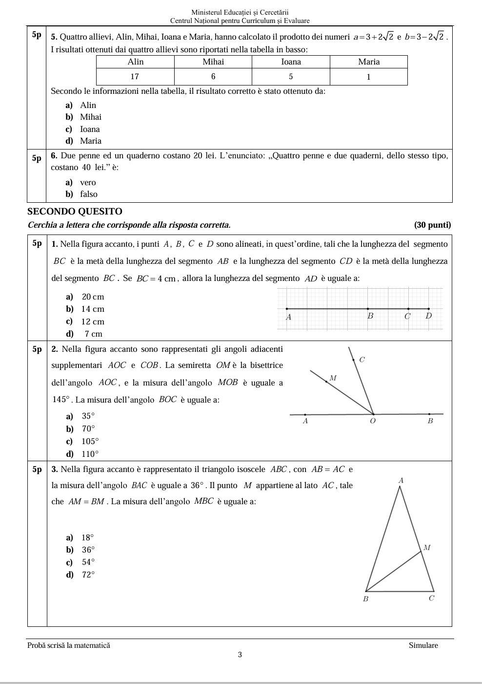 Simulare Evaluare Națională 2026 la Matematică: subiecte şi barem