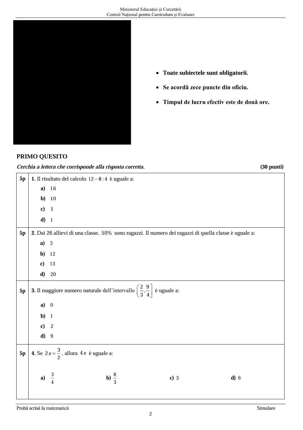 Simulare Evaluare Națională 2026 la Matematică: subiecte şi barem