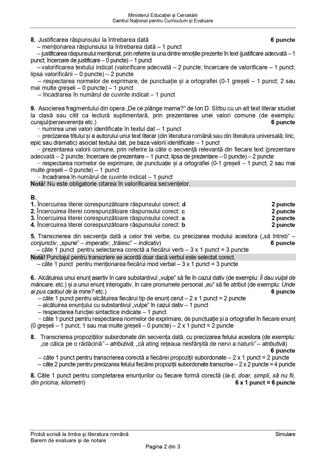 Simulare Evaluare Națională 2026: subiecte și barem la Limba Română