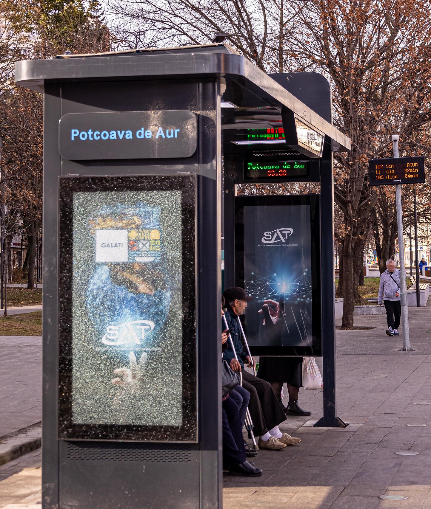 Singura stație smart pentru transport public din Galaţi, distrusă de un bărbat. Fusese montată abia de 2 luni