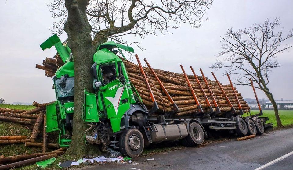 Şofer de TIR păzit de-un înger în cabina distrusă complet într-un copac, în Germania
