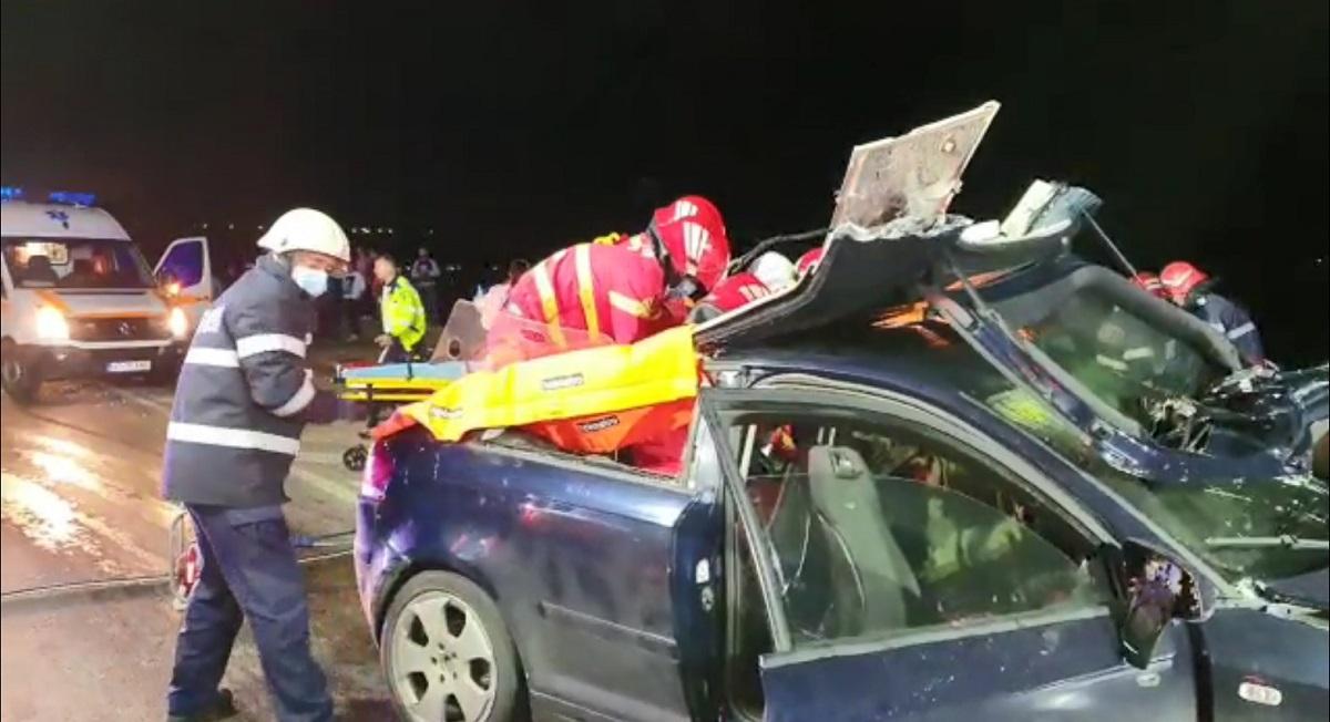 Șofer mort după un impact teribil, la intrarea în Slatina. Două fete de 17 și 18 ani, printre victime (Video)