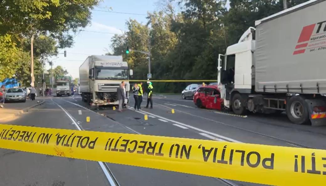 Șofer mort după un impact dezastruos cu două TIR-uri, pe un bulevard din Timișoara. O cameră de supraveghere a filmat accidentul înfiorător