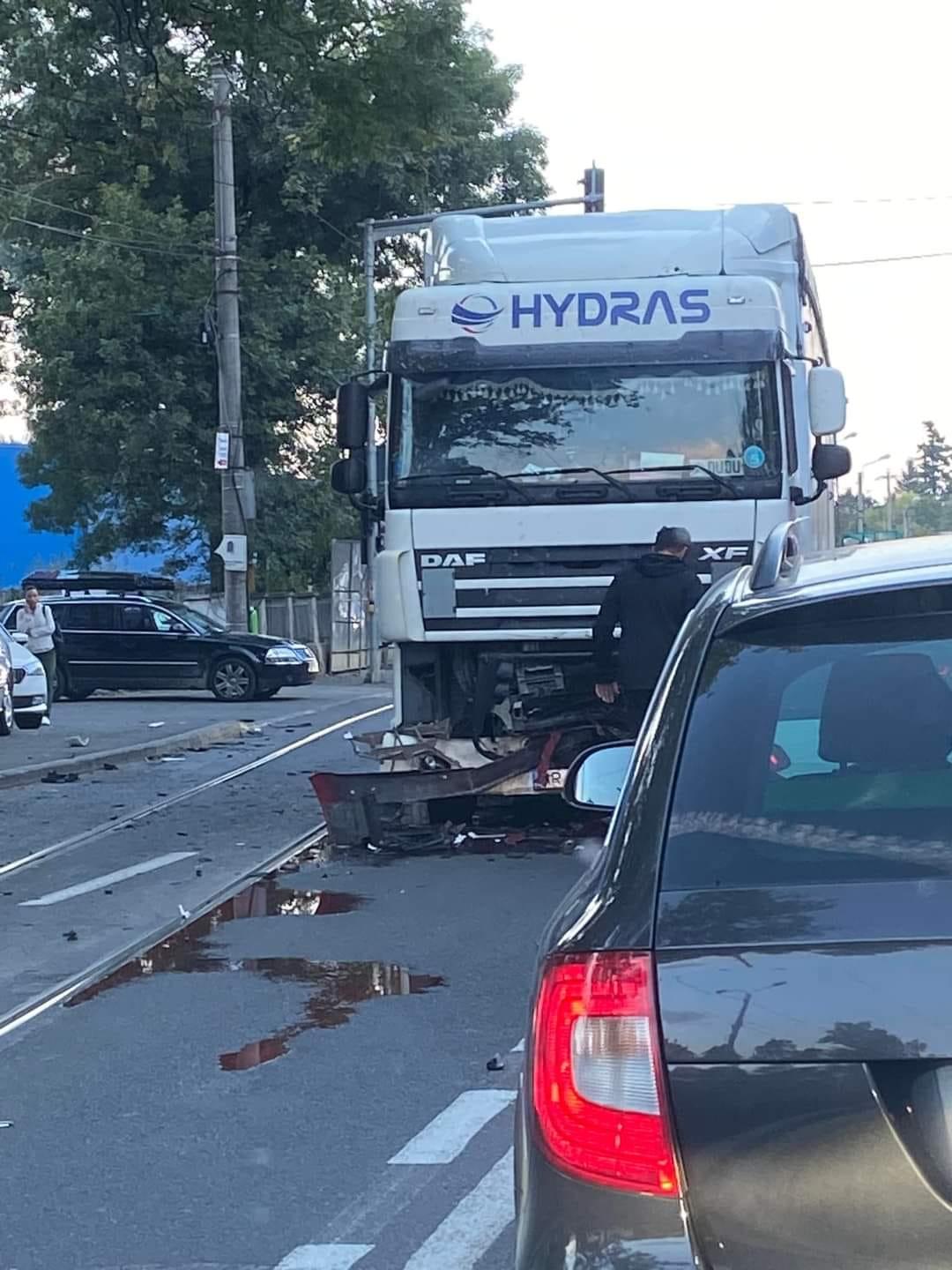 Șofer mort după un impact dezastruos cu două TIR-uri, pe un bulevard din Timișoara. O cameră de supraveghere a filmat accidentul înfiorător