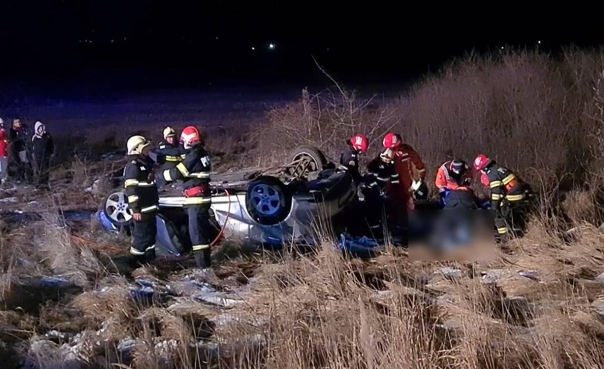 Şofer mort într-o Alfa Romeo, a zburat cu 200 km/oră peste un sens giratoriu din Caransebeş | Sursa foto: captura video infocs.ro