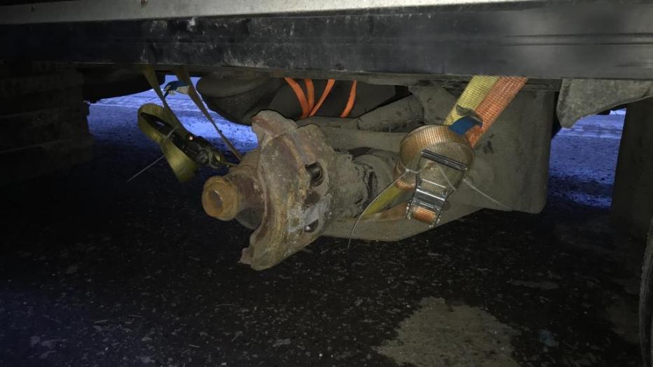 Şofer român de TIR circula pe autostradă, în Austria, fără o roată şi cu osia legată cu chingi de camion