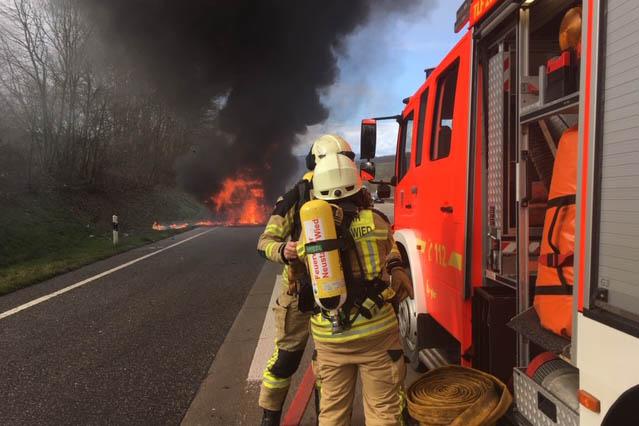 Şofer român de TIR, doar 23 de ani, cu cabina în flăcări, pe o autostradă din Germania